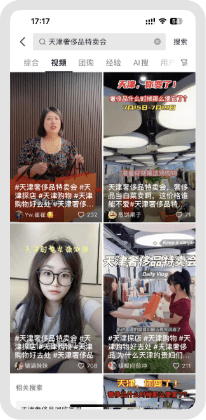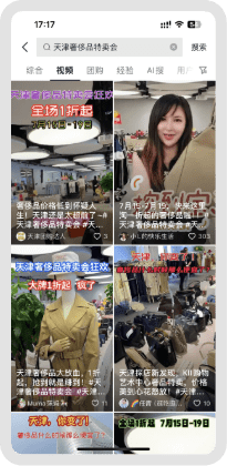 晗正高端奢侈品展销会以抖音话题#天津特卖会 为切入点,搭配同城达人矩阵分发,打造特卖会品宣热度,吸引同城消费者线下到店消费打卡。